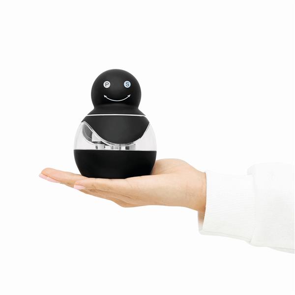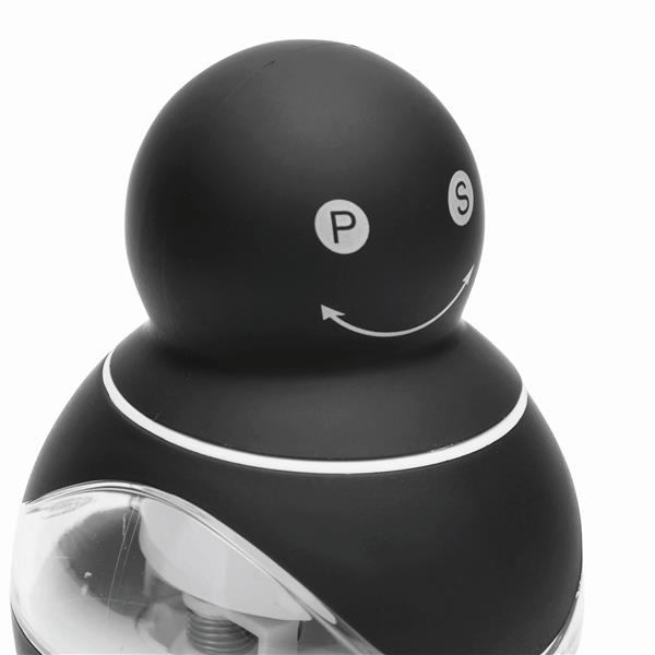 Młynek do soli i pieprzu INNOVATION, gumowana powierzchnia, przezroczyste okienka, mechanizm obrotowy pozwalający zmielić z jednej strony pieprz, a z drugiej sól.