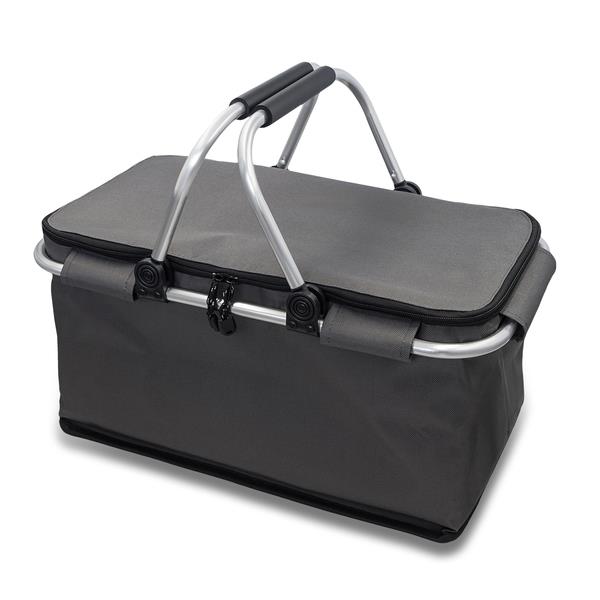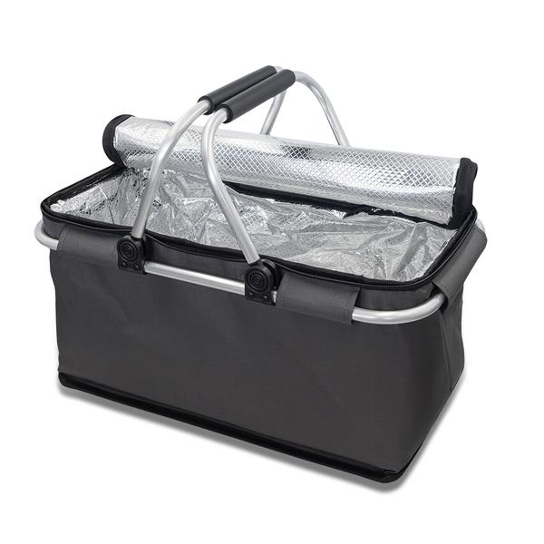 Wykonany z poliestru izotermiczny kosz piknikowy o pojemności 32 litrów. Zapewnia bardzo dobrą izolację termiczną dzięki starannemu wyłożeniu wnętrza grubą warstwą izotermiczną z folii aluminiowej oraz pianki EPE. Aluminiowa rama, uchwyt z pianki EVA. Maksymalne obciążenie 15 kg