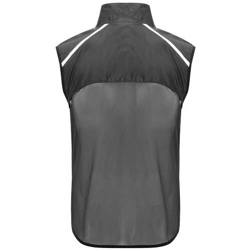 Wiatroszczelny i oddychający. Zamek błyskawiczny z przodu z dopasowaną ochroną podbródka. Elastyczne wiązanie pod pachami i u dołu. Dolna część pleców z mikroperforowanego materiału. Dobrze widoczne detale na górze, z przodu i z tyłu. Kieszeń z elastycznym paskiem do przechowywania kamizelki i noszenia jej na nadgarstku. Usuwalna etykieta.