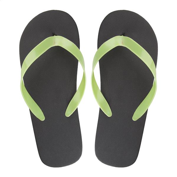 Personalizowane japonki z podeszwą PE i taśmą PVC. Produkt składany jest z dowolnej kombinacji kolorystycznej podeszw i pasków. Min.ilość: 50 par.