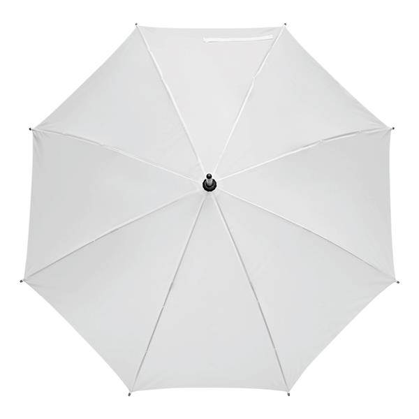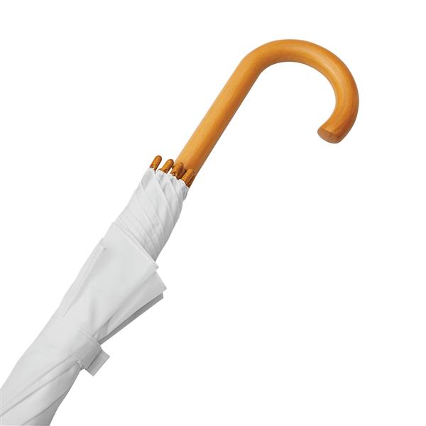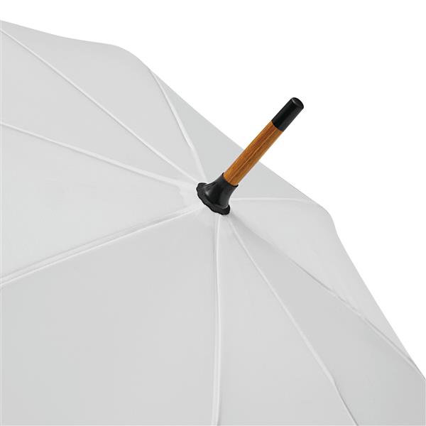Automatyczny parasol JAZZ z poszyciem z poliestru wykonanego z tworzyw sztucznych pochodzących z recyklingu. Ma drewnianą laskę, szyny z włókna szklanego oraz drewniane kolce. Posiada zaokrąglony, drewniany uchwyt. Zapinany jest na rzep.