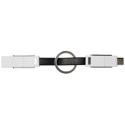 Kabel 4-w-1, dzięki któremu naładujesz wszystkie urządzenia. Posiada złącze USB typu A, typu C oraz końcówkę 2 w 1, która jest kompatybilna zarówno z urządzeniami z systemem iOS, jak i Android. Może być używany do ładowania i przesyłania danych. W zestawie znajduje się breloczek do kluczy i magnesy do wygodnego przenoszenia.