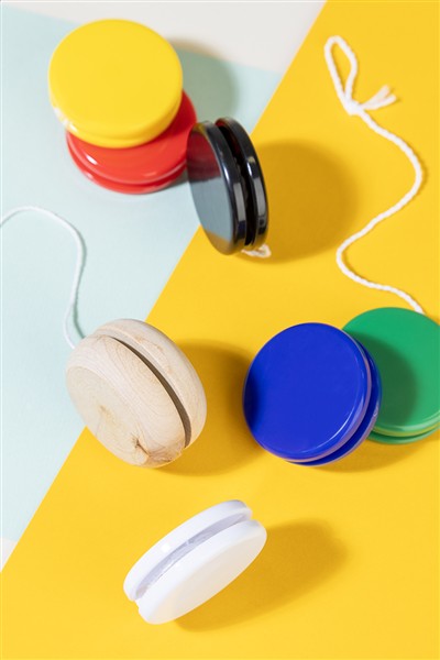 Płaskie jo-jo wykonane z przetworzonego plastiku PS.