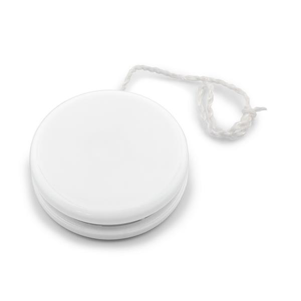 Jo-Jo z białym sznurkiem, może być ciekawym sposobem na ćwiczenie refleksu oraz umiejętności manualnych, produkt wykonany z plastiku