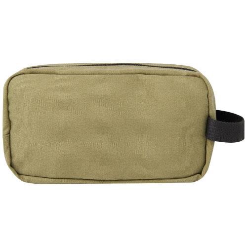 Kosmetyczka wykonana z płótna z recyklingu z certyfikatem GRS, z podszewką z RPET z certyfikatem GRS. Posiada zapinaną na zamek przednią kieszeń i jedną zapinaną na zamek komorę główną z kieszeniami organizacyjnymi oraz wygodną taśmę. Ozdobna metalowa płytka może sprawić, że logo będzie świecić dzięki subtelnemu i matowemu wykończeniu. Pojemność: 3,5 litrów.