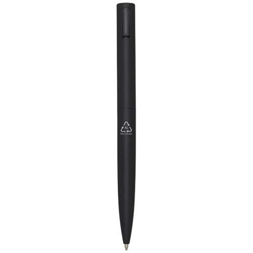 Długopis z górną częścią korpusu wykonaną z tworzyw sztucznych pochodzących z recyklingu i dolną częścią korpusu wykonaną z aluminium pochodzącego z recyklingu. Klips wykonany jest z żelaza. Kolor tuszu: Niebieski. Żywotność: 1000 metrów. Rozmiar stalówki: 1,0 mm.