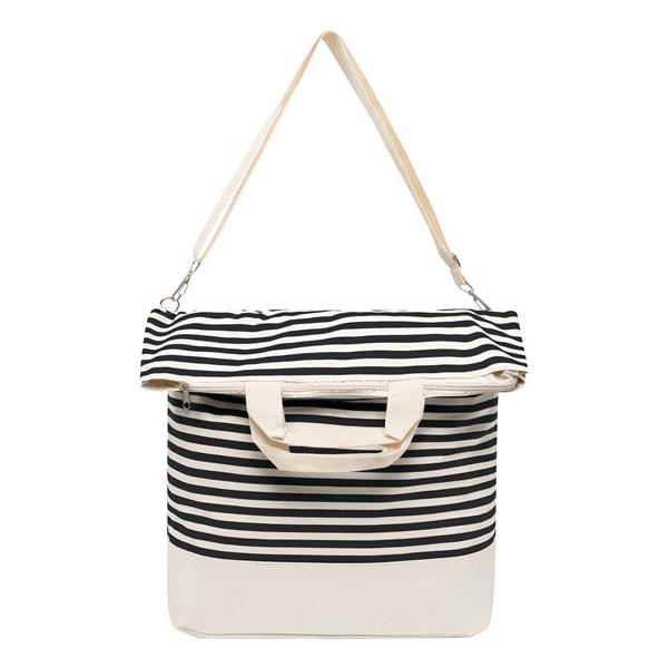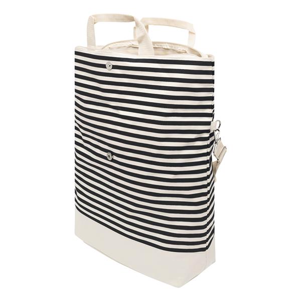 Torba plażowa JUIST z przestronną główną komorą na zamek, posiada 2 wygodne uchwyty do przenoszenia, regulowany i odpinany pasek na ramię, rozkładana dodatkowo dzięki guzikom magnetycznym (pojemność torby można zwiększyć lub zmniejszyć o około 25%). Materiał: 300D Poliester Kolor: beżowy, czarny Tagi: Torby,artykuły plażowe,bagaż