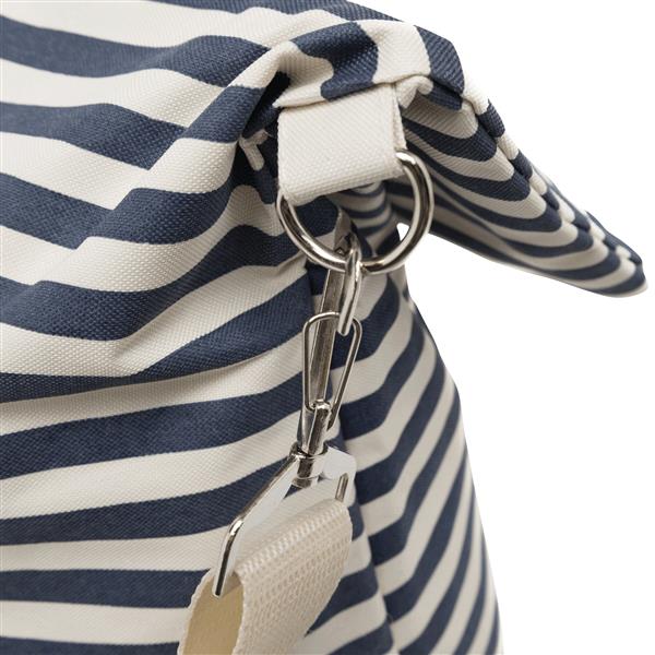 Torba plażowa JUIST z przestronną główną komorą na zamek, posiada 2 wygodne uchwyty do przenoszenia, regulowany i odpinany pasek na ramię, rozkładana dodatkowo dzięki guzikom magnetycznym (pojemność torby można zwiększyć lub zmniejszyć o około 25%).