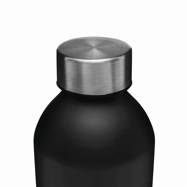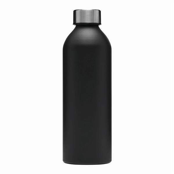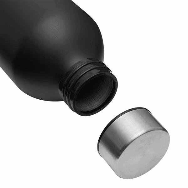 Aluminiowa butelka do picia JUMBO TRANSIT: jednościenna, zakrętka plastikowa z silikonową uszczelką i powłoką ze stali nierdzewnej, pojemność: ok. 750 ml. Materiał: Aluminium/Stal nierdzewna/PP/Silikon Kolor: czarny Tagi: Kubki izolowane,kubki,filiżanki,przybory kuchenne,artykuły gospodarstwa domowego,kubki termiczne,akcesoria podróżne,kubki do kawy