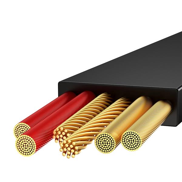 Nie musisz obawiać się sytuacji, w której dochodzi do jednej z najczęstszych awarii w kablach – zgięcia czy przetarcia w okolicach końcówki. Wszystko za sprawą wzmacnianej konstrukcji, jaką zastosował Baseus – każde wyjście zostało wzmocnione tak, abyś mógł swobodnie korzystać z kabla przez długi czas.