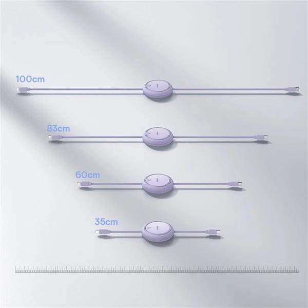 Zwijana konstrukcja kabla Baseus Free2Pull to świetne rozwiązanie dla tych, którzy cenią sobie porządek i wygodę. Umożliwia płynne zwijanie i rozwijanie kabla – wystarczy pociągnąć jedną stronę lub obie strony, aby osiągnąć odpowiednią długość. Kabel ma cztery ustawienia długości: 100 cm, 83 cm, 60 cm oraz 35 cm, co pozwala na elastyczne dostosowanie go do różnych potrzeb. Wbudowany podwójny turbinowy mechanizm zapewnia płynność przez ponad 50000 cykli, co oznacza, że kabel jest nie tylko praktyczny, ale i trwały.