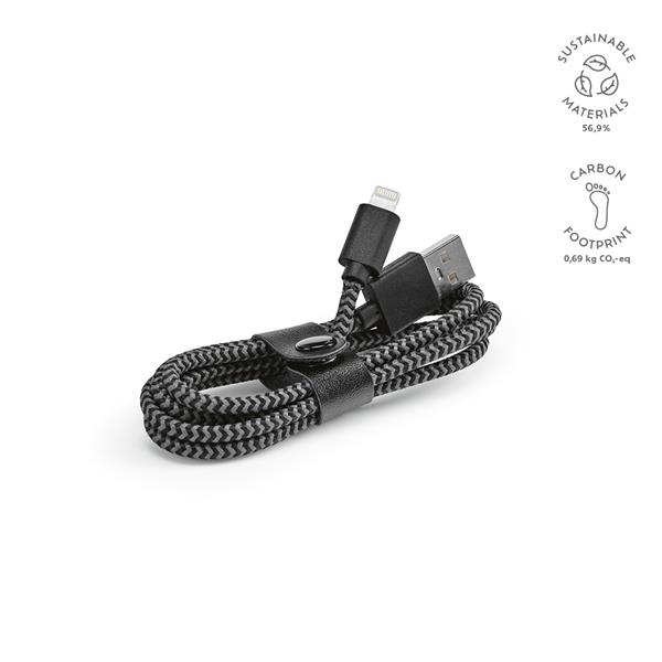 Udoskonal swoje możliwości ładowania dzięki naszemu 1-metrowemu kablowi rPET, zaprojektowanemu w celu uproszczenia i przyspieszenia cyfrowego życia. Łączy on USB-A z Lightning, zapewniając nie tylko szybkie ładowanie, ale także zrównoważony wybór. Ciesz się bardziej ekologicznymi rozwiązaniami technicznymi.
