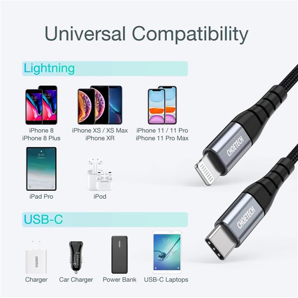 Choetech IP0041 nie ogranicza się tylko do jednego rodzaju zasilacza. Dzięki złączu USB-C jego wszechstronność pozwala na korzystanie z różnorodnych źródeł zasilania, w tym ładowarek sieciowych, samochodowych, powerbanków, a także laptopów i komputerów. Ta uniwersalność sprawia, że kabel jest idealnym towarzyszem w podróży, w pracy, jak i w domu.