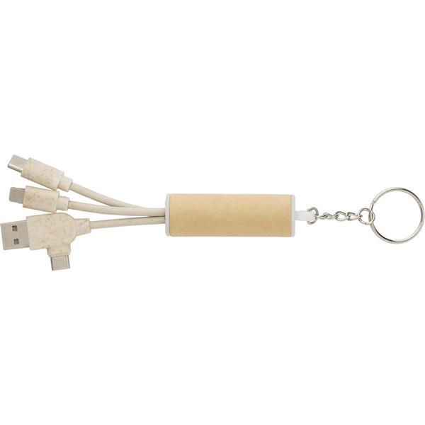 Brelok do kluczy, kabel do ładowania z 4 końcówkami: USB, USB typu C, micro USB oraz kompatybilna z urządzeniami iOS, papierowe elementy