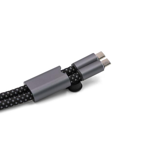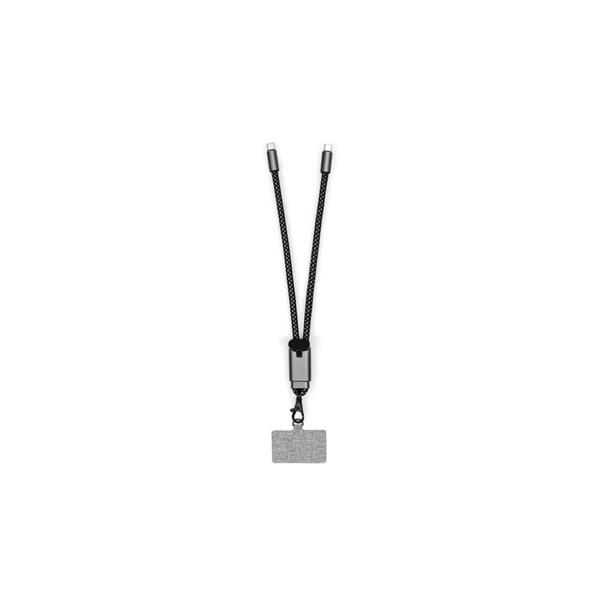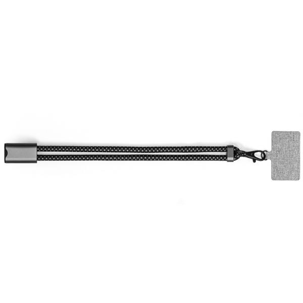 Kabel do ładowania i synchronizacji BrandCharger Lany Wristband Charge, wykonany z przetworzonych powtórnie butelek PET, lekki, regulowany i przetestowany pod kątem wytrzymałości do 8 kg, pasuje do większości etui na telefony, wyposażony w kabel w oplocie RPET-Nylon z wejściem typu C i wyjściem USB typu C, obsługuje moc do 60 W, kabel o długości 22 cm, produkt wykonany z nylonu, aluminium i RPET