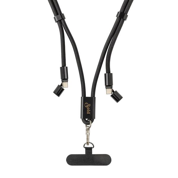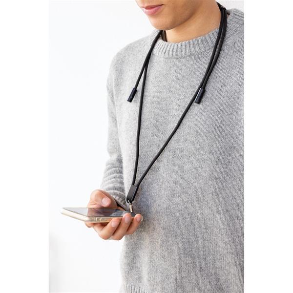 Kabel do ładowania i synchronizacji danych, smycz na telefon, wykonany z RPET z certyfikatem RCS, moc całkowita ładowania do 60W, końcówki USB-C do USB-C, całkowita zawartość materiałów z recyklingu obliczona na podstawie wagi całkowitej przedmiotu: 84%