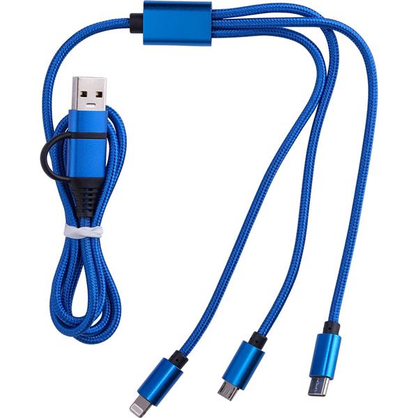 Kabel do ładowania z 4 końcówkami: USB, USB C, micro USB oraz końcówką kompatybilną z urządzeniami iOS