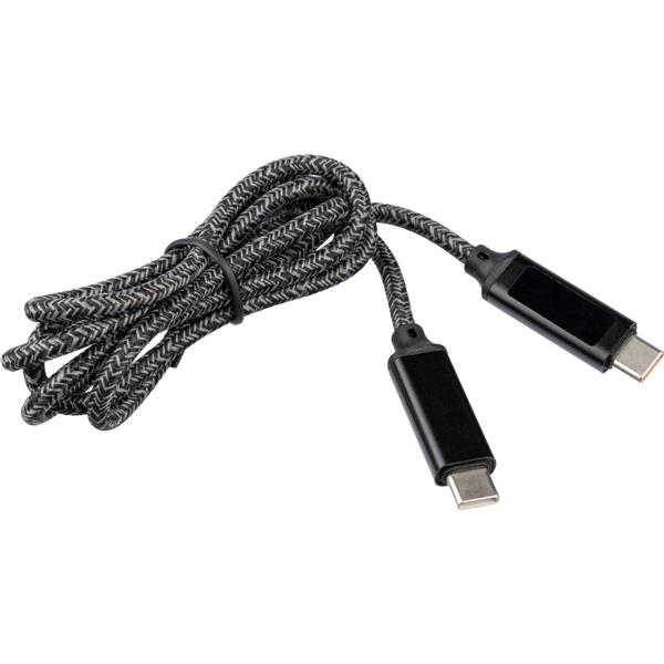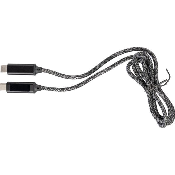 Kabel do ładowania i przesyłania danych 65W, o długości 1 metra, USB-C na USB-C, niebieska kontrolka prędkości ładowania na gnieździe, zmieści się w kieszeni, produkt wykonany z tkaniny nylonowej i aluminium