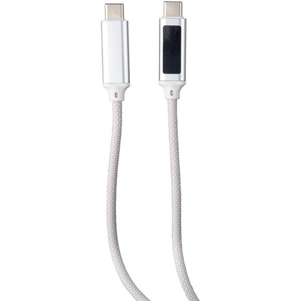 Kabel do ładowania i przesyłania danych 65W, o długości 1 metra, USB-C na USB-C, niebieska kontrolka prędkości ładowania na gnieździe, zmieści się w kieszeni, produkt wykonany z tkaniny nylonowej i aluminium