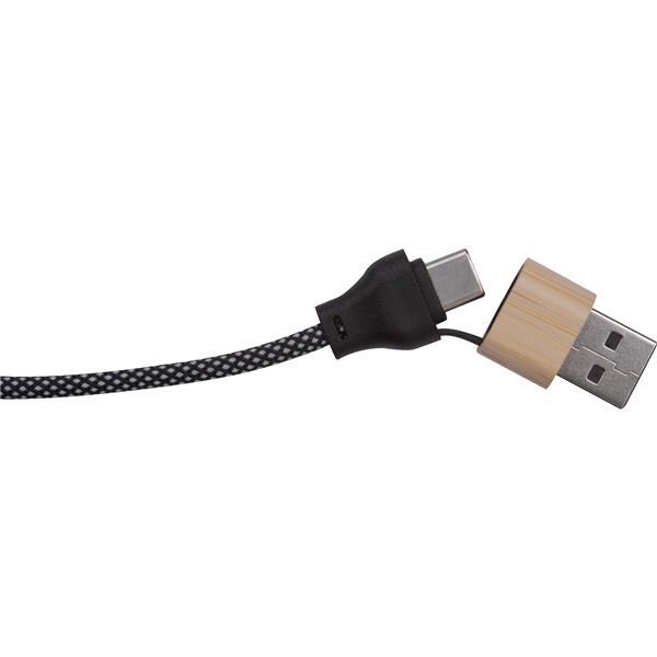 Kabel do szybkiego ładowania 60 W, o długości 3 m z wtyczką wejściową USB – C, wyjściem USB-C z adapterem na USB. Kabel posiada powłokę z PET, która zapobiega uszkodzeniom.