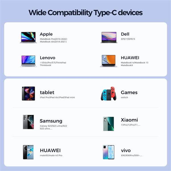 Wyjątkowa moc 240W i natężenie 5A, co oznacza, że możesz szybko naładować swoje urządzenia. To jedno rozwiązanie, które obsłuży wszystkie Twoje urządzenia: laptopy, tablety, telefony, a nawet konsolę Nintendo Switch. Pozwala na naładowanie urządzenia do 60% w zaledwie 30 minut, oszczędzając Twój cenny czas.