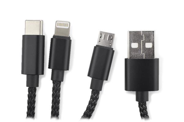 Kabel LUX to świetny gadżet reklamowy, gdyż posiada on idealne miejsce na wygrawerowane logo, które podświetli się po podłączeniu kabla! Jest to kabel 3 w 1, co oznacza, że posiada końcówki: micro USB, USB typu C i Lightining (iPhone). Sam przewód powleczony jest wzmacnianym materiałem i ma długość ok. 1 m. Kabel służy wyłącznie do ładowania.