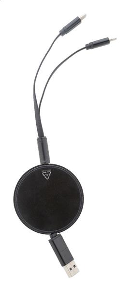 Teleskopowy kabel do ładowarki USB z aluminium pochodzącego z recyklingu. Ze złączami micro USB, USB-C i Lightning. Z wejściami USB i USB-C.