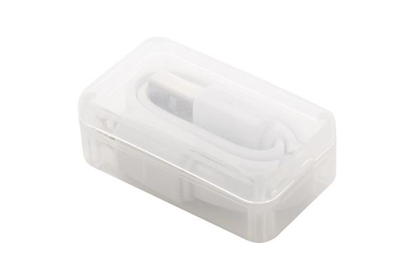 Description: Kabel USB ze złączami Micro USB i Lightning, w plastikowym pudełku. Długość 25 cm. Primary Color: biały Secondary Color: srebrny Material 1: Plastik Rozmiar: 40×30×20 mm Porty ładowania – Wyjście: 1×USB