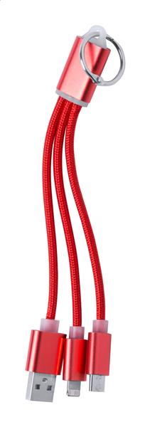 Aluminiowy kabelek USB z brelokiem. Zawiera złącza USB, USB-C, Lightning / micro USB.