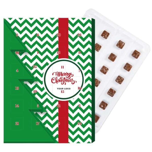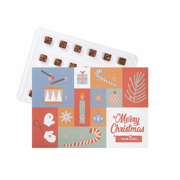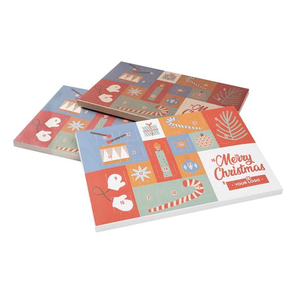 Pyszne, mleczne czekoladki ukryte w 24 okienkach to świetny sposób na okazanie troski i dbałości o samopoczucie Twojego zespołu. Każde okienko dowolnie personalizujemy, z obu stron wykonując wybrany przez Ciebie nadruk. Opakowanie tworzymy, bazując na monofolii z recyklingu i certyfikowanym papierze FSC.