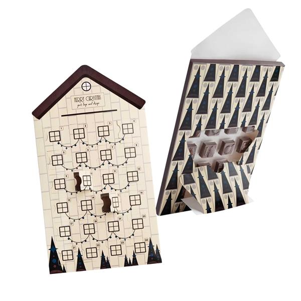 Chcesz sprawić swoim pracownikom i kontrahentom świąteczną niespodziankę? Kalendarz Adwentowy Kamieniczka to idealny wybór. Ponumerowane okienka, odpowiadające każdemu dniu oczekiwania na Święta, kryją w sobie mleczne czekoladki, które umilą każdy grudniowy dzień. Dodatkowo, samo opakowanie kalendarza stanowi doskonałą powierzchnię pod personalizację. Możemy umieścić na nim Twoje logo, grafikę lub hasło, podkreślając tym samym świąteczny charakter produktu i wzmacniając wizerunek Twojej marki.