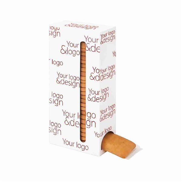 W pełni biodegradowalne opakowanie z papieru certyfikowanego FSC mieści w sobie 24 sztuki słodkości. Każda zapakowana w folię kompostowalną, w pełni przyjazną dla środowiska.