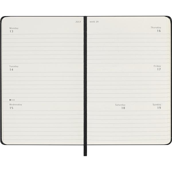 Kalendarz kieszonkowy (ok. A6, pocket) MOLESKINE, twarda okładka, tygodniowy, horyzontalny (144 str.), zakładka i elastyczna opaska do zamykania