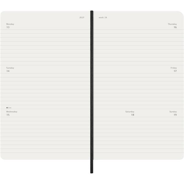 Kalendarz duży (ok. A5, large) MOLESKINE, miękka okładka, tygodniowy, horyzontalny (144 str.), zakładka i elastyczna opaska do zamykania