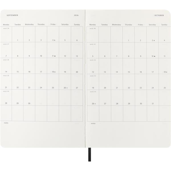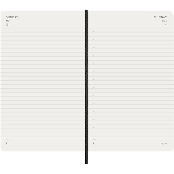 Kalendarz duży (ok. A5, large) MOLESKINE, miękka okładka, dzienny (400 str.), zakładka i elastyczna opaska do zamykania