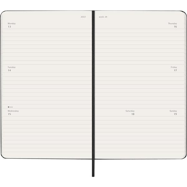 Kalendarz duży (ok. A5, large) MOLESKINE, twarda okładka, tygodniowy, horyzontalny (144 str.), zakładka i elastyczna opaska do zamykania
