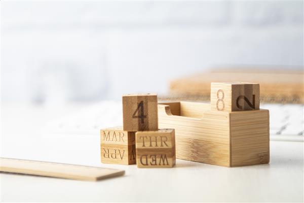 Bambusowy kalendarz wieczny na biurko z 4 kostkami.