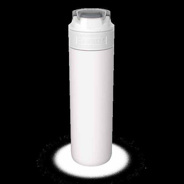 Ta butelka na wodę została stworzona z niezwykłą dbałością o detale. Cechuje ją estetyczny, niebanalny design i wysoka jakość materiałów. Jest wykonana z izolowanej próżniowo stali nierdzewnej 18/8, nie zawiera szkodliwego BPA. Ma silikonowy spód zapobiegający przesuwaniu się kubka i chroniący przed zarysowaniem powierzchni oraz silikonową opaskę, która ułatwia wygodne trzymanie butelki.