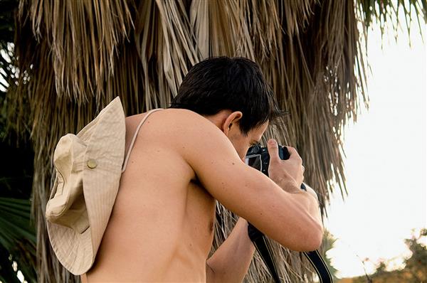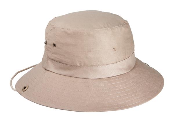 Kapelusz bawełniany z tasiemką i metalowym zatrzaskiem.