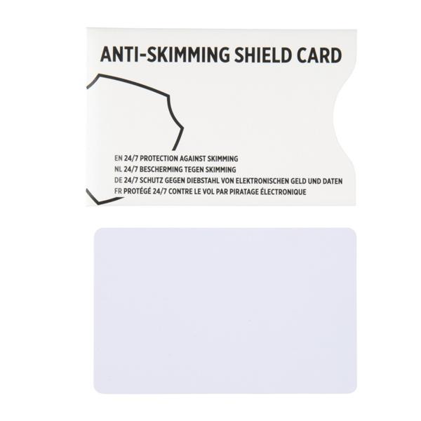 Karta do portfela z ochroną RFID, pobiera energię ze skanerów NFC/RFID do wytworzenia pola elektronicznego, dzięki któremu wszystkie karty 13,56 MHz stają się niewidoczne dla skanerów, nie wymaga używania baterii, opatentowana technologia E-FIELD z ochroną 24/7 przed elektroniczną kradzieżą, ślad węglowy produktu: 0,1 kg CO2