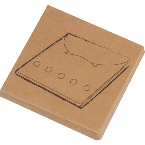 Karteczki samoprzylepne w kartonowym opakowaniu (25 sztuk większych żółtych i 5 kolorów po 25 sztuk karteczek mniejszych).