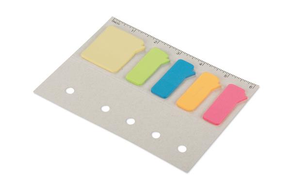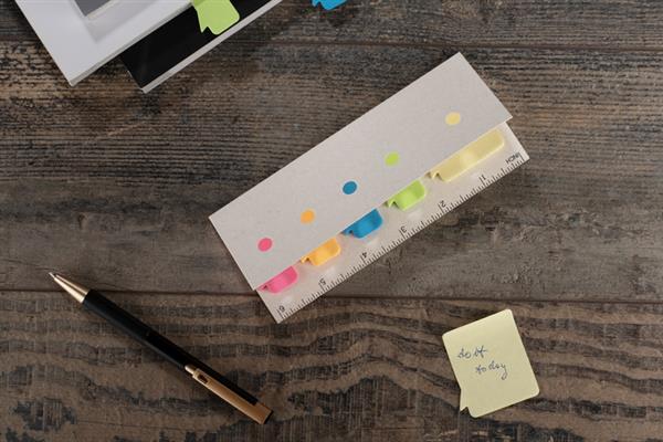 Zestaw karteczek samoprzylepnych CLOUD to funkcjonalny gadżet biurowy o nietypowym, przyciągającym wzrok designie. Wykonany z recyklingowanego kartonu po mleku, łączy w sobie praktyczne kolorowe zakładki oraz linijkę, która stanowi część opakowania. Kompaktowy format sprawia, że zestaw idealnie sprawdzi się zarówno w biurze, jak i w podróży – do szybkiego notowania, planowania i organizowania dokumentów. Świetny jako dodatek do zestawów biurowych i kreatywnych kampanii promocyjnych.