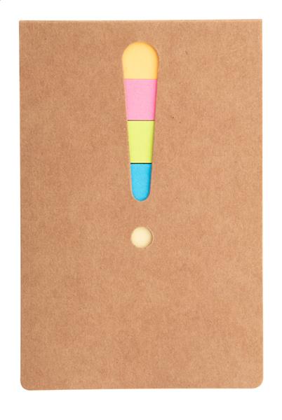 Karteczki samoprzylepne: 25 dużych i 100 małych (w 4 różnych kolorach). Z wyciętym wykrzyknikiem na okładce. Description: Karteczki samoprzylepne: 25 dużych i 100 małych (w 4 różnych kolorach). Z wyciętym wykrzyknikiem na okładce. Primary Color: beżowy Material 1: Papier Gramatura papieru: 70 g/m2 Rozmiar: 70×106 mm