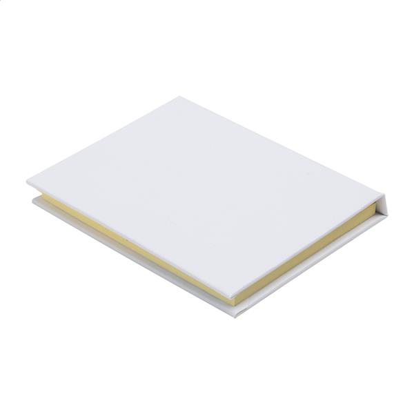Notatnik samoprzylepny z papieru pochodzącego z recyklingu, zawierający 50 dużych i 25 średnich żółtych karteczek oraz 125 zakładek (w 5 kolorach).
