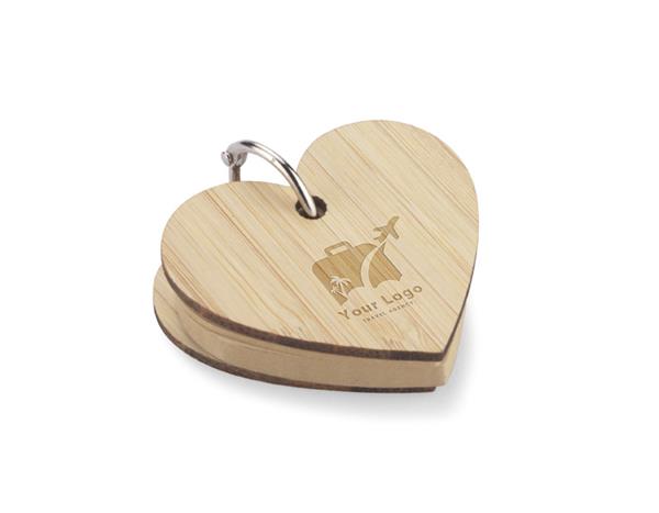 Karteczki samoprzylepne z brelokiem LOVA w kształcie serca, który ze względu na swoje przeznaczenie pozostanie z użytkownikiem na długo. Po zużyciu karteczek, bambusowe elementy będą służyły jako przyjemny w dotyku breloczek.