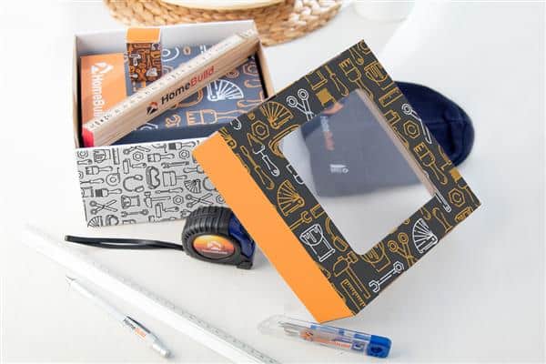 Description: Personalizowane pudełko z tektury falistej z nadrukiem full kolor. Dostarczane na płasko. Min. ilość: 50 szt. Primary Color: biały Material 1: Karton Height (Y): 12 cm Rozmiar: 215×120×205 mm Width (X): 21.5 cm Depth (Z): 20.5 cm