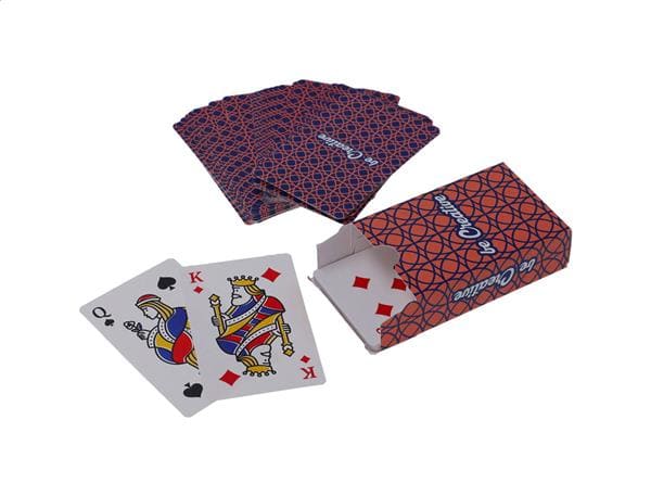 Description: Personalizowane klasyczna karty do gry z papieru typu kraft w pudełku. Jedna standardowa talia z 54 kartami. Cena obejmuje pudełko z nadrukiem w full kolorze oraz identyczny nadruk w pełnym kolorze na odwrocie każdej karty. Min. ilość: 100 szt. Primary Color: biały Material 1: Papier Rozmiar: 57×87×24 mm