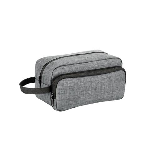 Kosmetyczka wykonana z 300D o wysokiej gęstości, z rączką, przednią kieszenią, wyściółką i zamkiem błyskawicznym. 220 x 115 x 115 mm