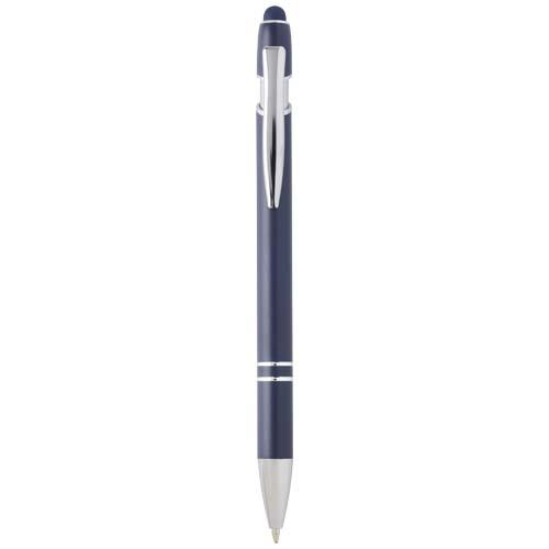 Długopis Kish ze srebrnym wykończeniem ma korpus wykonany z aluminium z recyklingu i rysik dotykowy wykonany z silikonu. Aluminium z recyklingu ogranicza ilość odpadów na wysypiskach śmieci i pomaga chronić zasoby naturalne w celu zmniejszenia emisji gazów cieplarnianych. Kolor tuszu: Czarny. Żywotność: 800 metrów. Rozmiar stalówki: 1,0 mm.