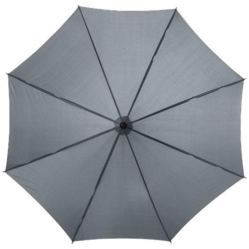 Klasyczny parasol automatyczny Kyle 23”Jeśli szukasz stylowego parasola, Kyle jest odpowiedzią. Automatyczny system pozwala na otwarcie parasola za pomocą jednego kliknięcia. Ponadto, parasol składa się z metalowych żeberek oraz eleganckiego drewnianego trzonu i rączki. Kyle jest dostępny w różnych kolorach i zapewnia wiele opcji nadruku. Wysokość: 88 cm